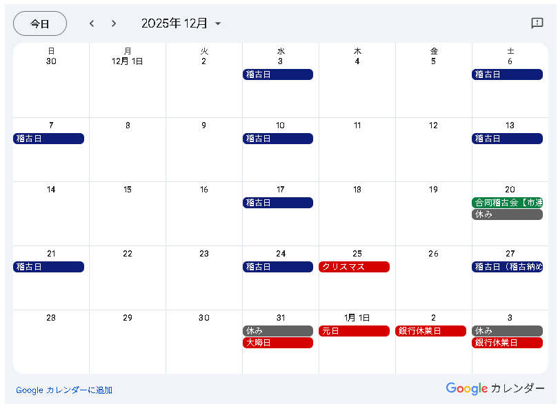12月の予定表を更新しました。
