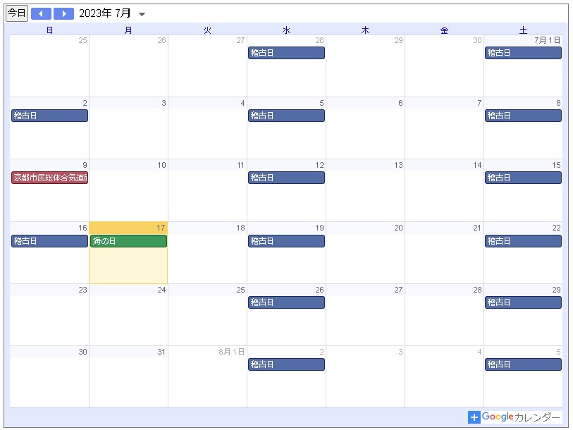 なお、令和5年(2023年)7月9日(日)に「京都市民総合体育大会合気道研修会」【京都市合気道連盟主催行事】の開催を予定しております。